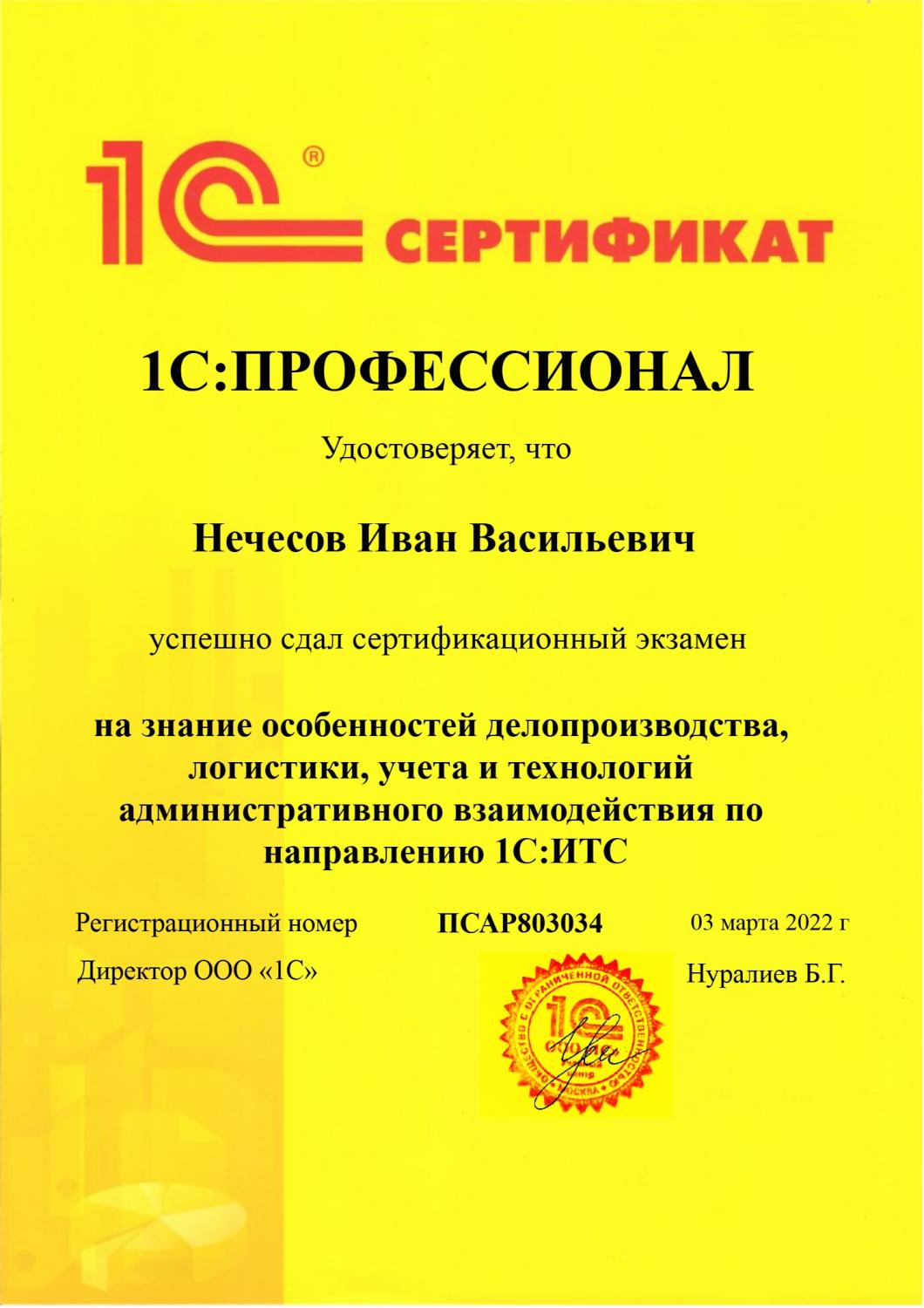 1С:Профессионал по делопроизводству, логистике, учету и технологиям взаимодействия 1С-ИТС